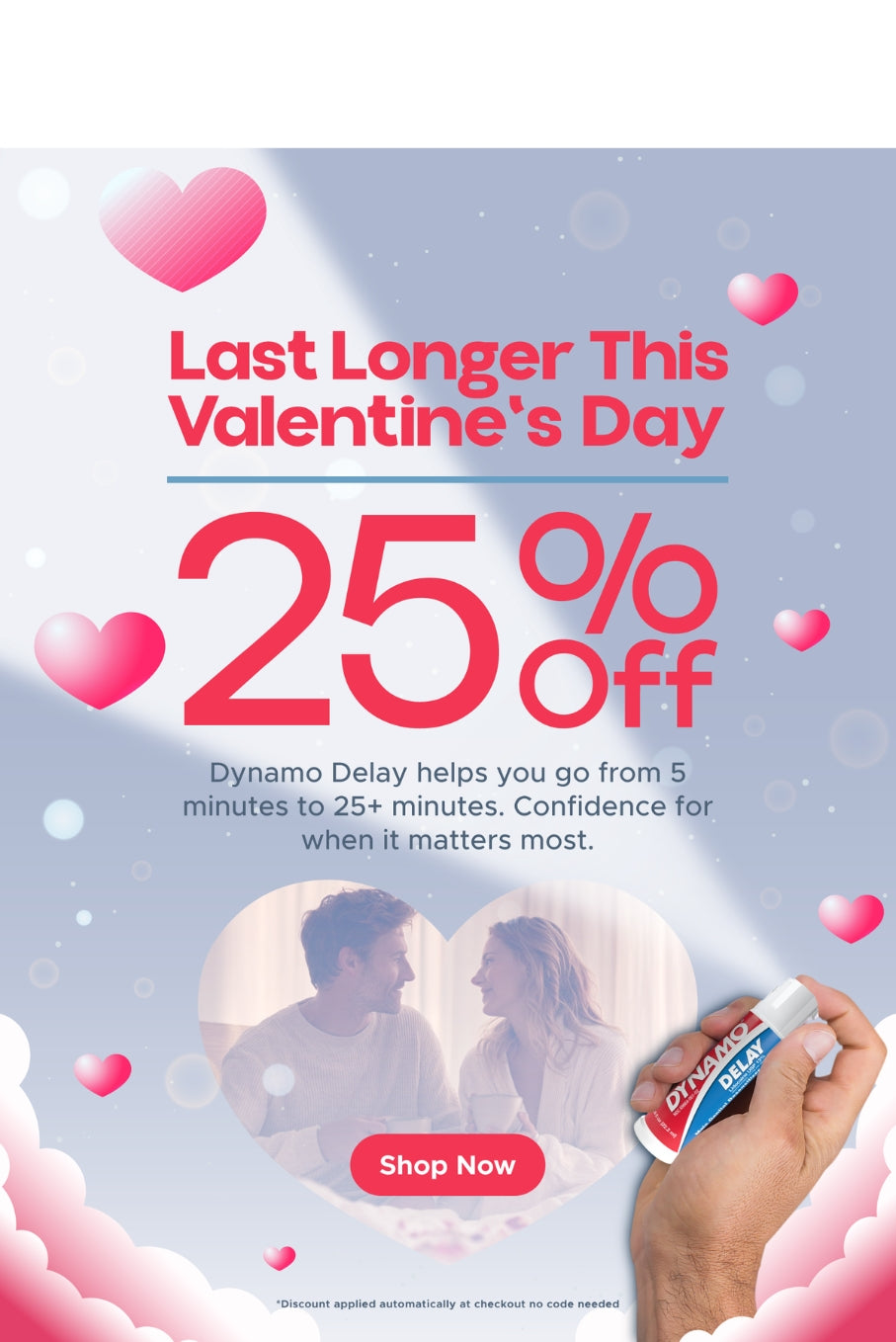 Dynamo® Delay creates a temporary numbing sensation on the head and shaft of the penis. When used as directed, most men begin to feel the effect within 5–10 minutes, helping to reduce sensitivity and maintain control during intimacy for longer-lasting performance.